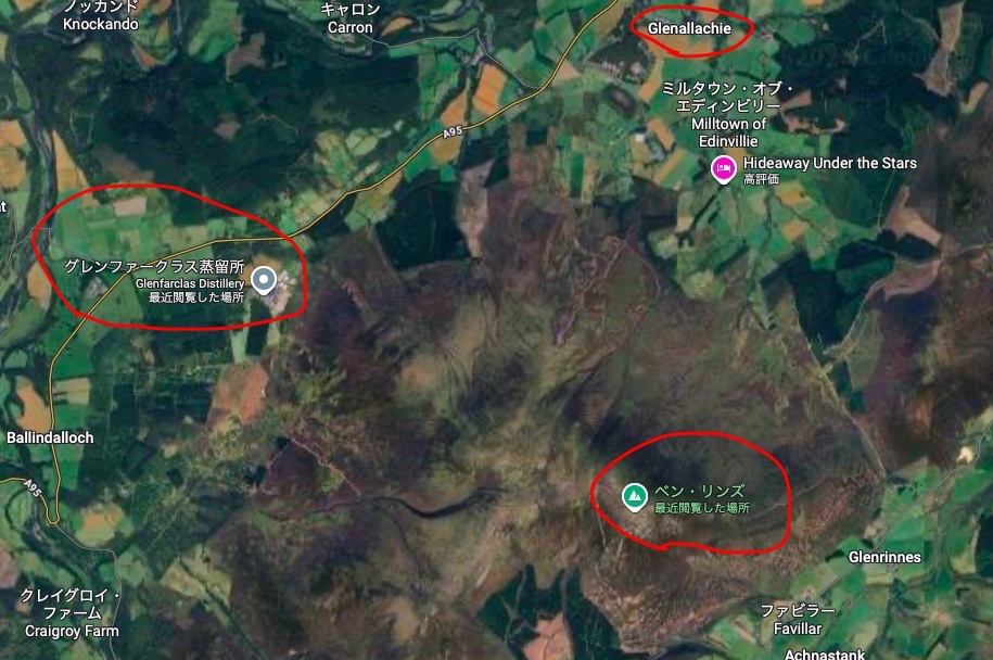 ベン・リネス山はスペイサイドのランドマークであり、その山体と山麓は三浦市の2/3に相当するほどの広がりを持つ。